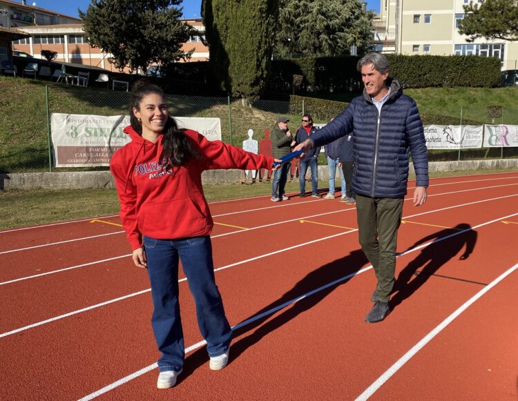 MONTEPULCIANO. Si sono ufficialmente conclusi i lavori di riqualificazione della pista di atletica dello stadio comunale “B. Bonelli” di Montepulciano, che questa settimana è stata consegnata alla Società Sportiva Poliziana e alla sua Sezione Atletica. L’impianto, rigenerato e pronto a ospitare nuove attività sportive e agonistiche, è ora in attesa dell’omologazione FIDAL necessaria per le competizioni ufficiali di livello nazionale. L’intervento ha comportato la rimozione del vecchio manto, installato negli anni ’80, e la sua sostituzione con una nuova pista di ultima generazione.