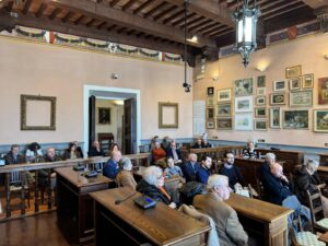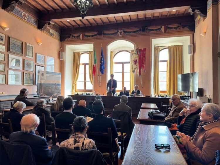 Alla presentazione della mostra, a cui ha fatto da moderatore Alamanno Contucci per conto della Società Bibliografica Toscana, hanno partecipato anche don Domenico Zafarana per l’Istituto valorizzazione abbazie storiche; Paolo Solini, Direttore del Consorzio del Vino Nobile di Montepulciano; Mario Ascheri, Università degli Studi Roma Tre; Stefano Selleri, Rotary Fellowship of Old and Rare Antique Books and Prints; Patrizia La Porta, Direttrice del Museo Civico Pinacoteca Crociani; Samuele Lastrucci, Direttore Museo de’ Medici di Firenze; Fausto Rossi, della Società Bibliografica Toscana.