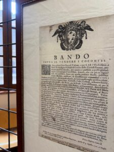 “Il materiale esposto – precisa Tiezzi Maestri – appartiene a un corpus di oltre 700 bandi, significativo del lascito dell’amministrazione medicea in tutto il territorio toscano, presente in tutti gli ambiti della quotidianità. Le disposizioni anche sugli aspetti più effimeri attestano un’attenzione specifica alle attività più ordinarie”.