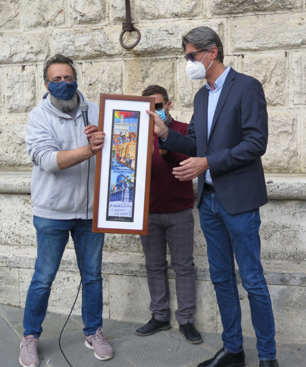 MONTEPULCIANO. Si è tenuto nello spazio aperto, altamente significativo, di Piazza Grande l’atto finale del progetto di solidarietà “Un disegno per spingere insieme”, concepito e portato avanti dalle associazioni di Montepulciano durante il periodo di lockdown.