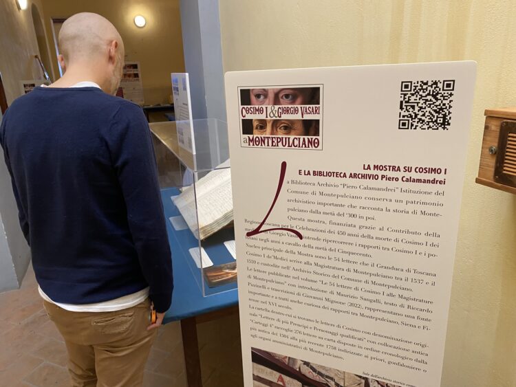 Mentre la Biblioteca Comunale ospiterà, fino al prossimo 31 gennaio 2025, una mostra bibliografica di alcune delle 54 lettere che il Granduca di Toscana Cosimo I de’Medici scrive alla Magistratura di Montepulciano tra 1° febbraio 1537 al 1° maggio 1559. Sempre per quanto riguarda questo prezioso patrimonio epistolare, è stato realizzato anche un percorso audio visivo all’interno del portale della Biblioteca con le letture teatrali, realizzate dalla Compagnia Impluvium e le scansioni ad alta risoluzione, di tutte le 54 lettere.