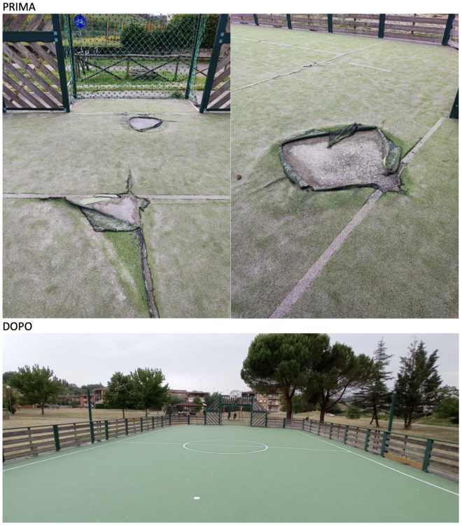 Due opere che hanno previsto dei lavori di rifacimento del manto di gioco del campo
