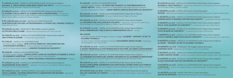 «Il nostro cartellone estivo prosegue in una direzione ormai tracciata e consolidata in questo mandato amministrativo ossia organizzare eventi di elevata qualità e di portata nazionale ed internazionale – afferma il Sindaco Andrea Frosini – facendo tesoro ogni anno dell’esperienza pregressa. Il programma di quest’anno prevede musica, prosa, spettacoli ed incontri per ogni tipo di pubblico, dislocati nel Castello, che è il monumento più celebre del nostro territorio, ma anche nelle frazioni, dove l’attenzione è stata rivolta soprattutto alle famiglie ed ai giovani. Una dimostrazione della capacità organizzativa dell’Amministrazione, che sviluppa con continuità momenti comunitari, ma anche rivolti ai numerosi turisti che stanno già arrivando sul territorio da svariati mesi. Non è un caso che quest’anno i pieghevoli con il programma siano stati stampati sia in italiano, che in inglese, quindi un’attenzione alla nostra comunità, ma anche al vasto flusso di persone che vogliamo accogliere nel migliore dei modi. Infine voglio ringraziare tutti i volontari delle associazioni del nostro territorio, per il grande apporto collaborativo nella costruzione dei due giorni intensissimi di rievocazioni sulla storia del Castello, che si terranno il 9 e 10 luglio in attesa di festeggiare finalmente il Trentennale della Festa medievale nel 2023, dopo i rinvii che si sono susseguiti a causa dell’emergenza pandemica».