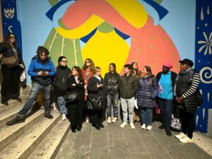 Dopo la visita, a cantiere aperto, del murales in costruzione, l’evento si è spostato in vicolo Ciaspini dove Rame13 ha completato nei giorni scorsi la realizzazione di un murales dedicato questa volta ad una parte importante della storia locale, ovvero le impagliatrici. Un’opera che ha restituito al vicolo bellezza e qualità.
