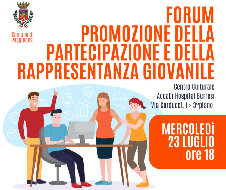 Il forum, dal nome “Promozione della partecipazione e della rappresentanza giovanile”, è stato istituito dal Consiglio Comunale del 25 febbraio a seguito di una mozione approvata all’unanimità, presentata da alcuni consiglieri nelle modalità previste dal Regolamento per le forme e gli strumenti di partecipazione.