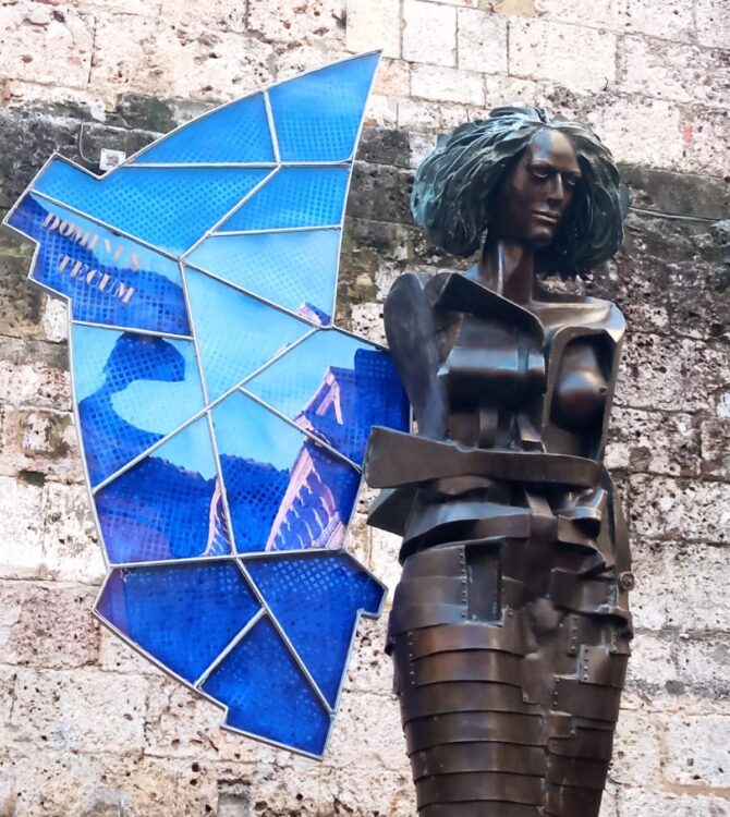 In tre luoghi particolarmente significativi della città, Palazzo Piccolomini, Palazzo Borgia e il Giardino “Leone Piccioni”, saranno esposte, proprio da sabato 8 marzo e fino al 31 maggio, dieci sculture di Alberto Inglesi che danno vita alla mostra “Donna in cammino”.