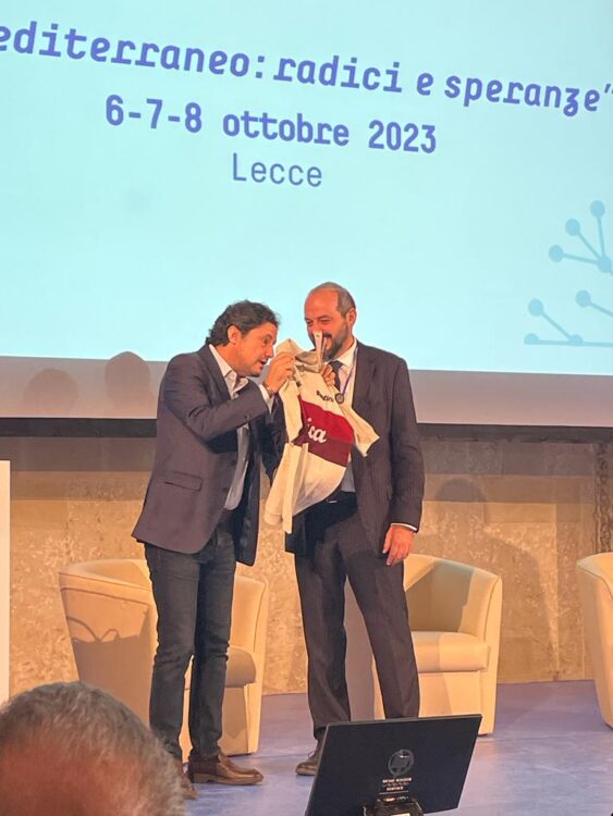 Il primo cittadino di Gaiole in Chianti nell’occasione ha donato anche la maglia dell’Eroica al sindaco di Lecce e al Ministro dell’Informazione del Libano, presente alla convention.