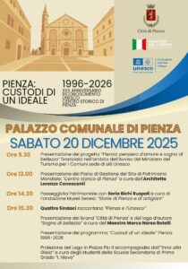 A trent’anni dal riconoscimento, la città di Pienza festeggia la sua appartenenza alla lista UNESCO dedicando tutto il 2026 a iniziative e eventi. Il programma, intitolato “Pienza: custodi di un ideale”, sarà presentato sabato 20 dicembre con un’intensa giornata di interventi, testimonianze e incontri che avrà un finale popolare e spettacolare.