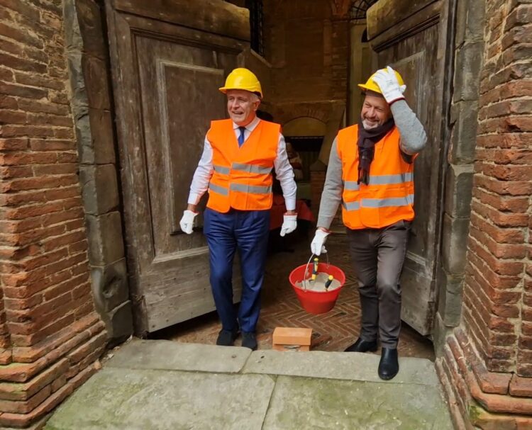 SINALUNGA. Il Palazzo Pretorio di Sinalunga, con la sua torre civica che sovrasta il centro storico, rappresenta un gioiello dell’architettura di metà ‘300. Per anni sede del tribunale e adibito a servizi pubblici, la struttura era chiusa da decenni e attendeva solo un intervento di recupero per poi essere restituita alla comunità sinalunghese. Con la cerimonia della posa della prima pietra avvenuta alla presenza del presidente della Regione Toscana Eugenio Giani, del sindaco di Sinalunga Edo Zacchei, dell’assessore alle infrastrutture Carlo Buracchi, dei progettisti e dei tecnici che hanno lavorato al progetto, dell’impresa a cui è stato affidato il restauro e del parroco di Sinalunga, è stato dato ufficialmente il via ai lavori di recupero e restauro dell’immobile.