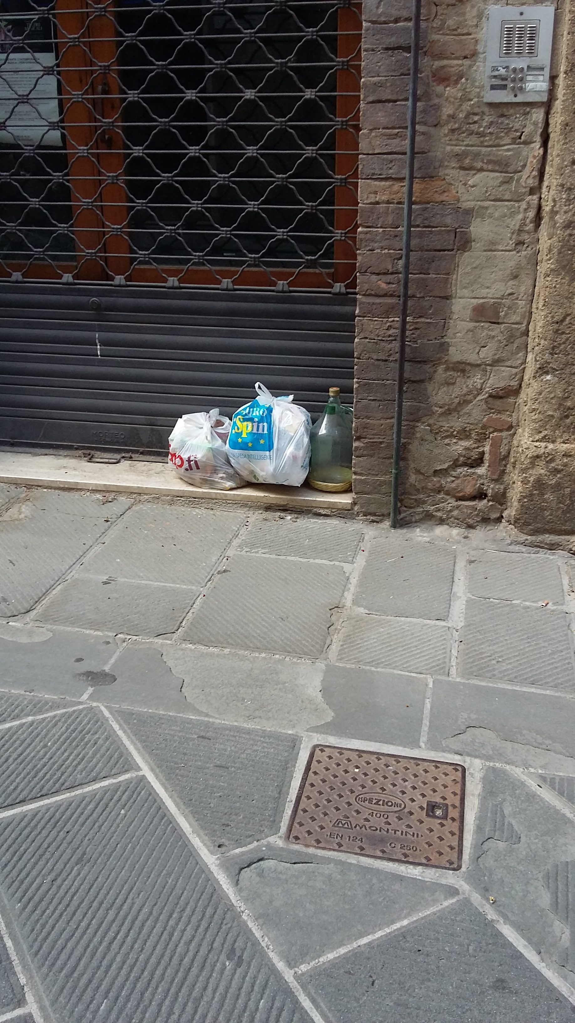 COLLE VAL D’ELSA. Le foto mostrano ciò che c’era nella via del centro storico di Colle domenica pomeriggio (7 luglio). La raccolta dei rifiuti porta a porta prevede un orario dalle 5 alle 8 ed ogni giorno per materiali diversi. In realtà, stanno mettendo fuori di tutto, ma ci sono degli orari ben precisi: dalle 20 alle 8. Dopo di che è proibito dal regolamento Comunale.