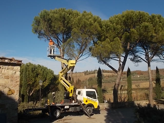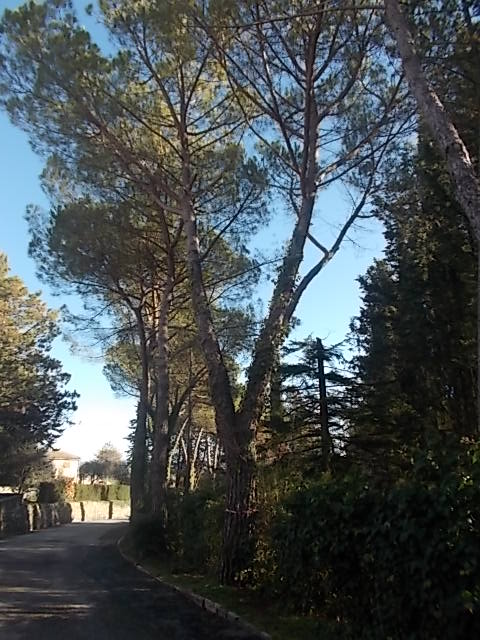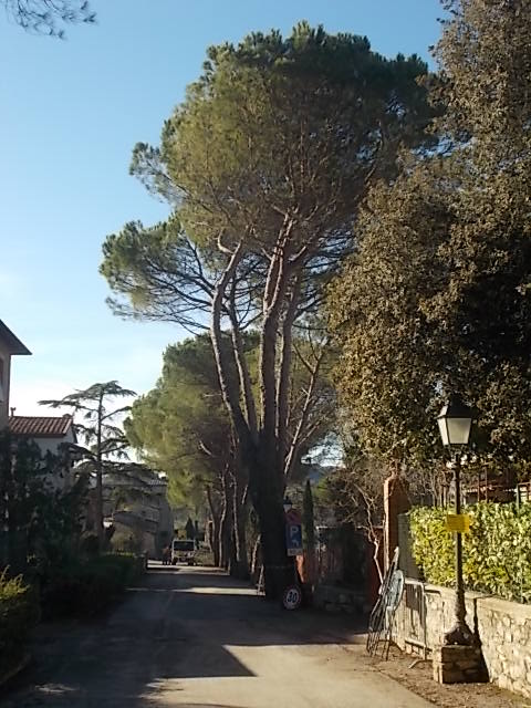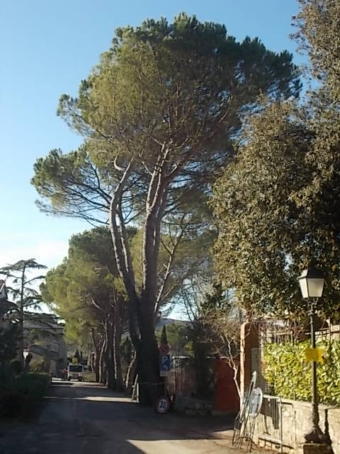 In questi giorni è in corso il taglio delle piante pericolanti e di quelle che si estendono troppo verso strada ed edifici. Una pianta, il pino, che mal si concilia con i centri abitati.