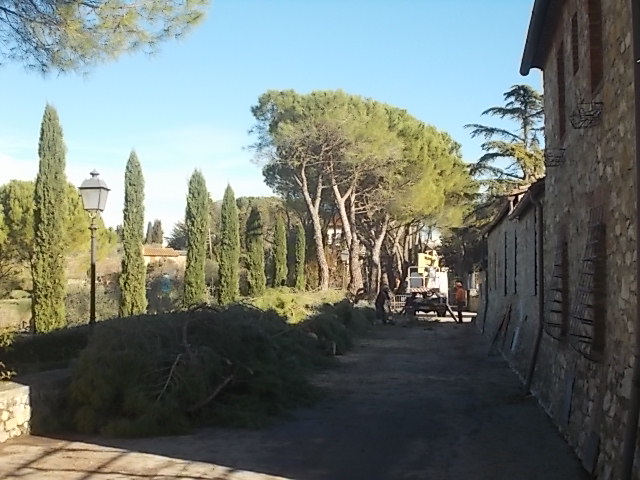 GAIOLE IN CHIANTI. (a. p.) Il rumore cupo della motosega mal si concilia in un piccolo borgo o in una via cittadina, con il calore emotivo dei ricordi di una vita passata giocando, crescendo, parlando, sotto le chiome, il fresco, la fisionomia protettiva del proprio nido all’interno di un luogo intriso di immagini e di persone. Un conflitto fra cuore e intelletto che farebbe onore essere applicato più spesso nei conflitti interiori del crescere e del vivere e di fronte ai dilemmi del quotidiano andare.