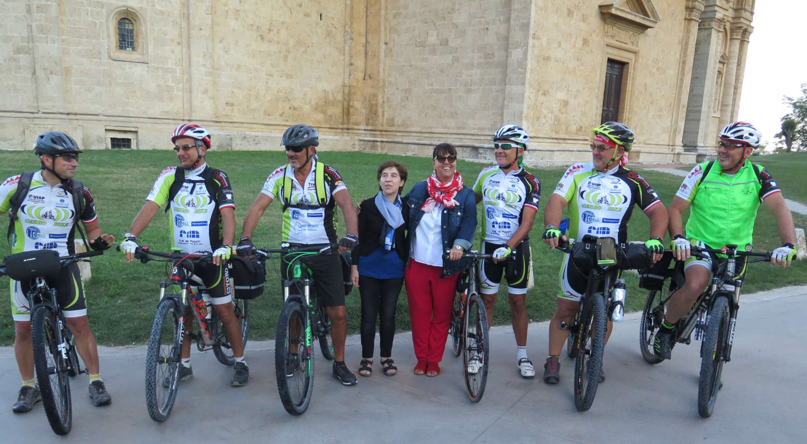 L’iniziativa è stata patrocinata dal Comune di Montepulciano, da sempre sensibile alla diffusione della mobilità dolce e lenta nel proprio territorio; alla partenza dal Tempio di San Biagio hanno assistito il vice-Sindaco Alice Raspanti e l’Assessore al Turismo Lucia Musso, che hanno fatto omaggio ai biker di una borraccia in acciaio con l’effige del Comune. La stessa che sarà presto distribuita ai bambini delle scuole per sensibilizzarli sull’importanza del riciclo e della riduzione dell’utilizzo della plastica.