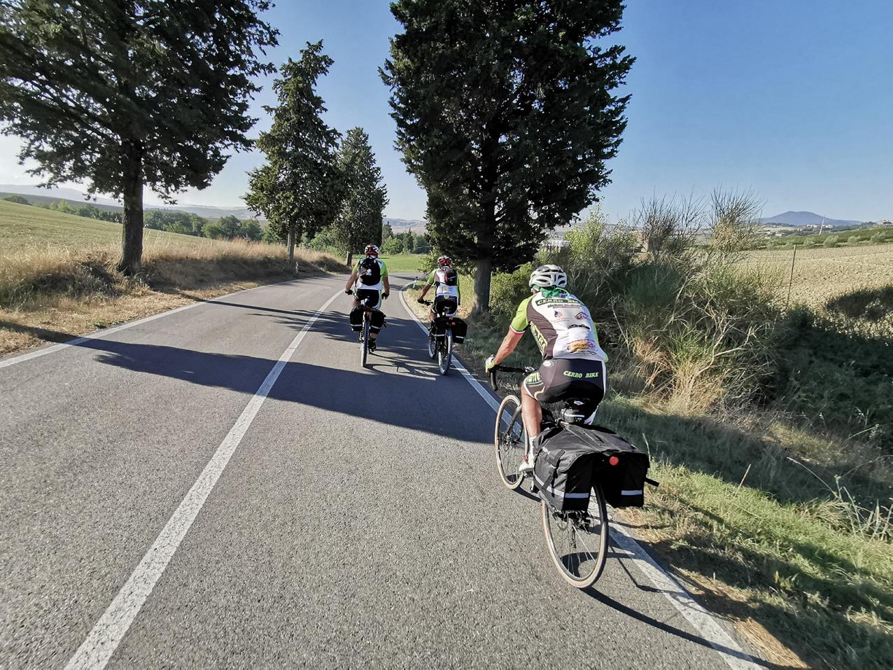 MONTEPULCIANO. I soci della Cerro Bike sono abituati alle escursioni in mountain bike, ma questa volta sono voluti uscire dai sentieri e dai boschi per confrontarsi con una nuova avventura: arrivare da Montepulciano a Piazza San Pietro seguendo la Francigena, ovvero il percorso narrato prima dell’anno 1000 dall’Arcivescovo britannico Sigerico che, di ritorno da Roma, descrisse il suo viaggio fino a Canterbury.