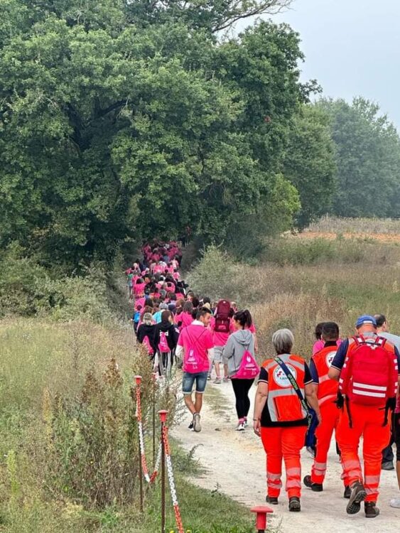 La passeggiata di 5,8 km è partita da Ponte allo Spino per arrivare in piazza a Sovicille, colorando di rosa le campagne del territorio.