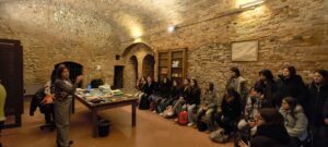 Durante il primo incontro del 30 gennaio la classe ha visitato il centro storico di Radicondoli a partire dalla statua Dina Ferri passando per la biblioteca di Radicondoli intitolata a lei. E poi, nella sala delle scuderie, introduzione al concetto di archivio, presentazione di fonti antiche a cura del prof. Paganelli, presentazione dell’archivio preunitario e dell’archivio post-unitario. A seguire, nella sala del Consiglio comunale una introduzione su Dina Ferri attraverso il dialogo con le alunne sulla base delle letture da loro già fatte e quindi la proiezione di un video sulla sua vita.