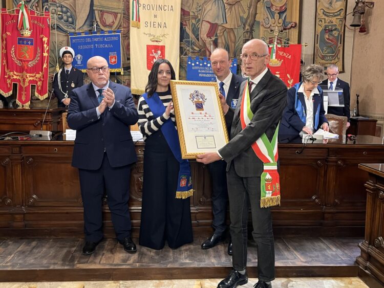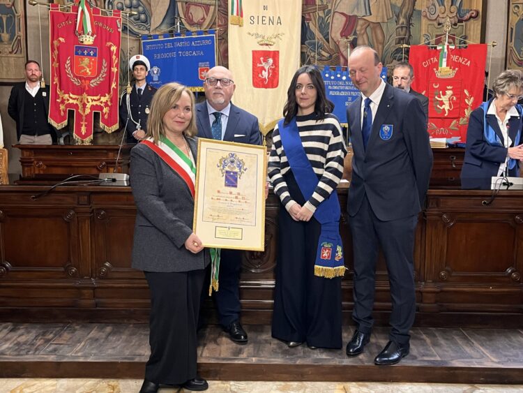 La cerimonia si è aperta con i saluti della Presidente della Provincia di Siena, Agnese Carletti, del Prefetto di Siena, Valerio Massimo Romeo, e del Presidente della Sezione Provinciale dell’Istituto del Nastro Azzurro, Stefano Mangiavacchi con il silenzio fuori ordinanza suonato eseguito dalla tromba della Banda Città del Palio.