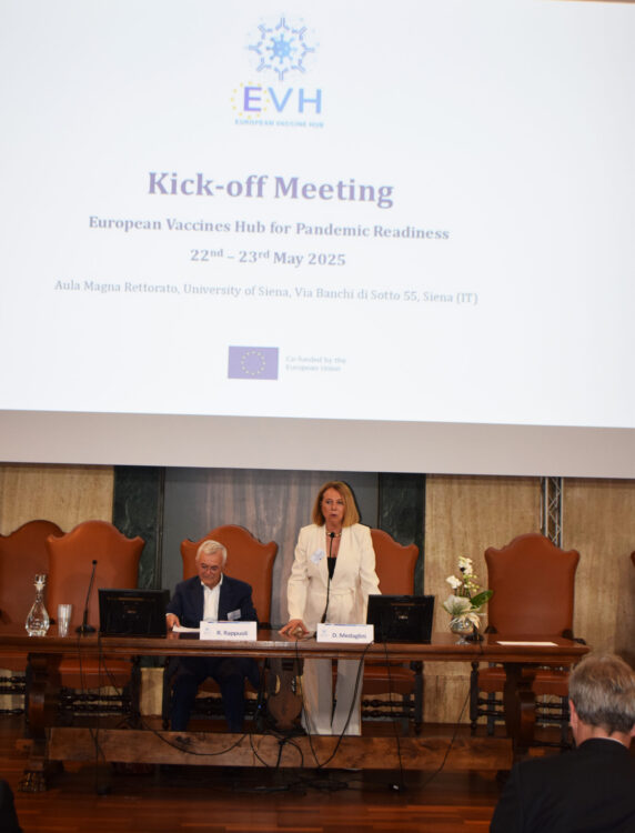 Il consorzio EVH è composto da 11 beneficiari e 13 entità affiliate e associate, provenienti da 7 Paesi europei, tra cui istituzioni leader nello sviluppo di vaccini e responsabili della preparazione anti-pandemica nei rispettivi paesi. Il progetto è coordinato dalla Sclavo Vaccines Association ETS (SVA), organizzazione no-profit con sede a Siena impegnata nella ricerca e nello sviluppo di vaccini, e vede la partecipazione della Fondazione Biotecnopolo di Siena e dell’Università di Siena. A guidare questa ambiziosa iniziativa sono come coordinatore del progetto Rino Rappuoli, presidente della SVA e direttore scientifico della Fondazione Biotecnopolo di Siena, e come coordinatrice scientifica del progetto Donata Medaglini ordinaria di Microbiologia e Microbiologia Clinica presso l’Ateneo senese, Pro-Rettrice Vicaria dell’Università di Siena e coordinatrice del Dottorato di Interesse Nazionale in “Innovazione nella diagnosi prevenzione e terapia delle infezioni a rischio epidemico-pandemico”.