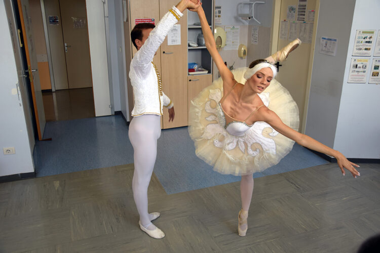 SIENA. Tutta la magia di un’arte in grado di combinare danza, musica, narrazione e spettacolo teatrale. È questo il balletto: disciplina che è stata nuovamente protagonista all’Azienda ospedaliero-universitaria Senese grazie a “Danza in Corsia”, iniziativa solidaristica proposta e organizzata dalla Compagnia “Balletto di Siena” diretta da Marco Batti e accolta dall’ospedale di Siena nell’ambito della promozione delle attività di umanizzazione delle cure. Protagonisti dell’appuntamento sono stati il day-hospital della Reumatologia, diretta dal professor Bruno Frediani, e il day-hospital/day-service della Neurologia, diretta dal professor Nicola De Stefano. Ad esibirsi i primi ballerini Chiara Gagliardo e Giuseppe Giacalone, Matilde Campesi e Filippo Del Sal, che hanno interpretato i “grand pas” tratti rispettivamente da “Il lago dei cigni” e dalla “Bella addormentata” di Tchaikovsky. Attenta e commossa la partecipazione da parte dei pazienti, all’evento ha presenziato anche la direzione aziendale dell’Aou Senese.
