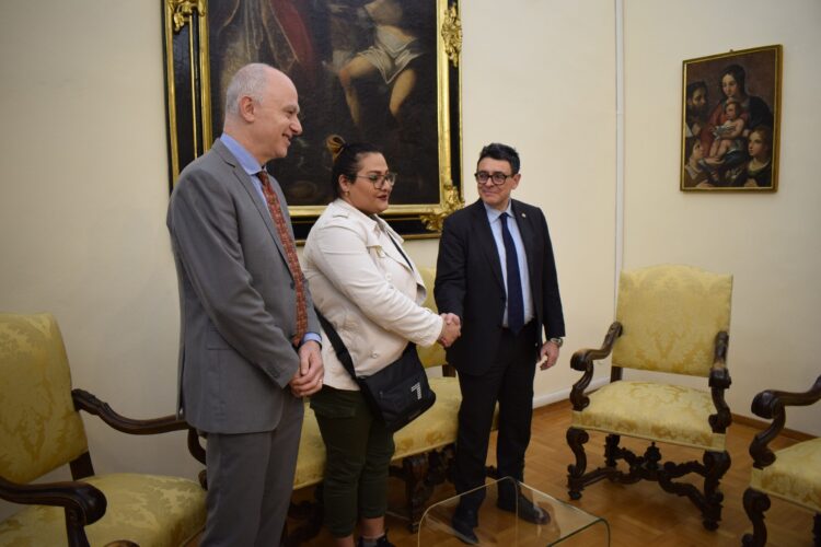 Mona A. è stata quest’oggi accolta al palazzo del Rettorato dal Rettore Roberto Di Pietra, che ha voluto esprimere personalmente alla neo studentessa la vicinanza della comunità accademica.