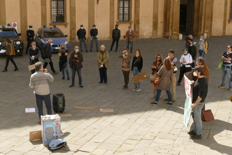 SIENA. Quella che si è svolta sabato mattina è stata una nutrita e partecipata manifestazione in Piazza Duomo a Siena. L’iniziativa, organizzata per contrastare i tentativi del governo Draghi di attuare il 5G e le smart city, ha visto protagoniste le numerose associazioni ambientaliste e i comitati del territorio senese. Il presidio è stato indetto da Atto Primo Salute, Ambiente e Cultura; Difensori della Toscana; Coordinamento Merse; R2020 fuoco di Siena; Comitato Farma e Italia Nostra Siena ed ha visto gli interventi di Tiziana Vigni, avvocatessa e presidente di Atto Primo, del medico Roberto Gabbrielli dell’associazione ISDE medici per l’ambiente e di Sonia Savioli, ambientalista e scrittrice.