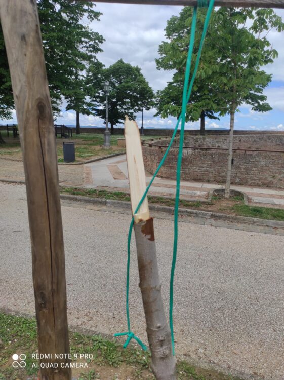 SIENA.  E’ stato registrato dall’ufficio aree verdi del Comune di Siena nella giornata di oggi, lunedì 15 maggio, un atto vandalico all’interno della Fortezza Medicea. Ignoti hanno spezzato di netto un albero di ippocastano, pianta che era stata da poco impiantata dall’amministrazione comunale nell’ambito degli interventi effettuati per la riqualificazione dell’area verde. L’ippocastano era stato in particolare inserito all’interno dell’area al posto di una pianta ritenuta pericolosa per l’incolumità pubblica, dopo l’analisi effettuata dalla stessa amministrazione.