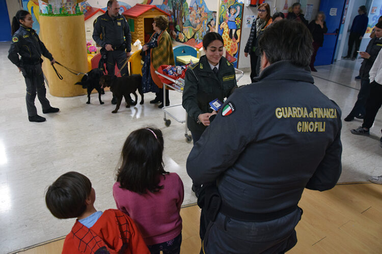 Gli agenti della Guardia di Finanza, accompagnati dalle unità cinofile di Livorno, chiudono in bellezza gli eventi natalizi dell’Aou Senese