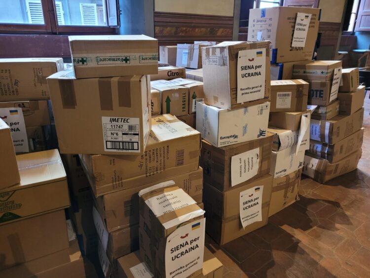 SIENA. Quasi diecimila articoli di prima necessità, cinquanta colli totali e duemila pannolini. Sono le cifre dei primi giorni di raccolta pro Ucraina promossa dal Comune di Siena, attraverso le farmacie comunali gestite da Asp “Città di Siena”, Ordine dei farmacisti, e Federfarma. La raccolta, lanciata dal sindaco Luigi De Mossi, ha coinvolto tutta la comunità senese. Il materiale fin qui raccolto e stoccato all’interno di Palazzo Patrizi a Siena sarà inviato in Ucraina attraverso i canali attivati da Caritas. In totale, ad oggi, sono stati raccolti in totale 9847 articoli, molti dei quali di importante valore economico che hanno rispecchiato l’elenco delle referenze diffuso dalle organizzazioni governative. A questi si aggiungono duemila pannolini che l’ufficio economato del Comune di Siena ha messo a disposizione della tipologia destinata agli asili comunali.