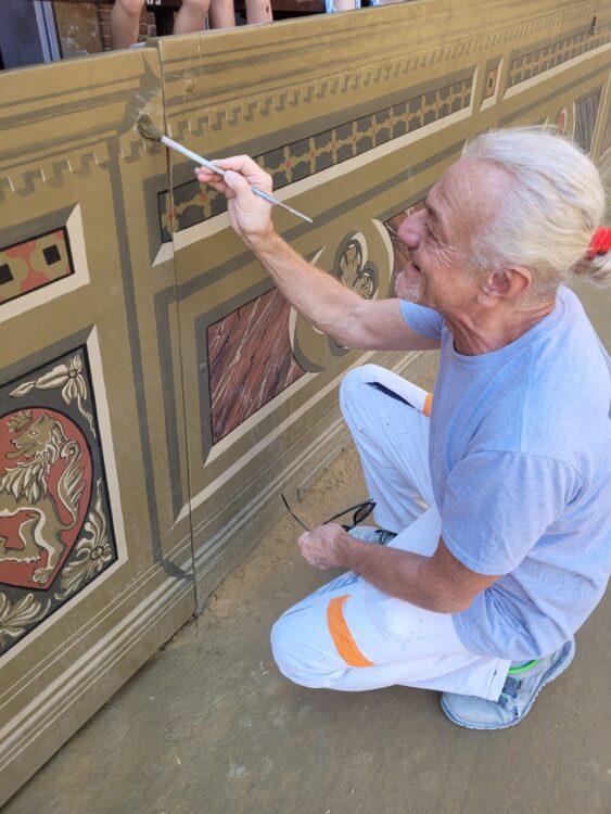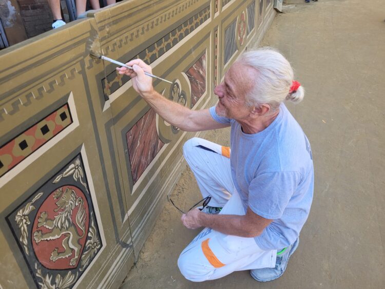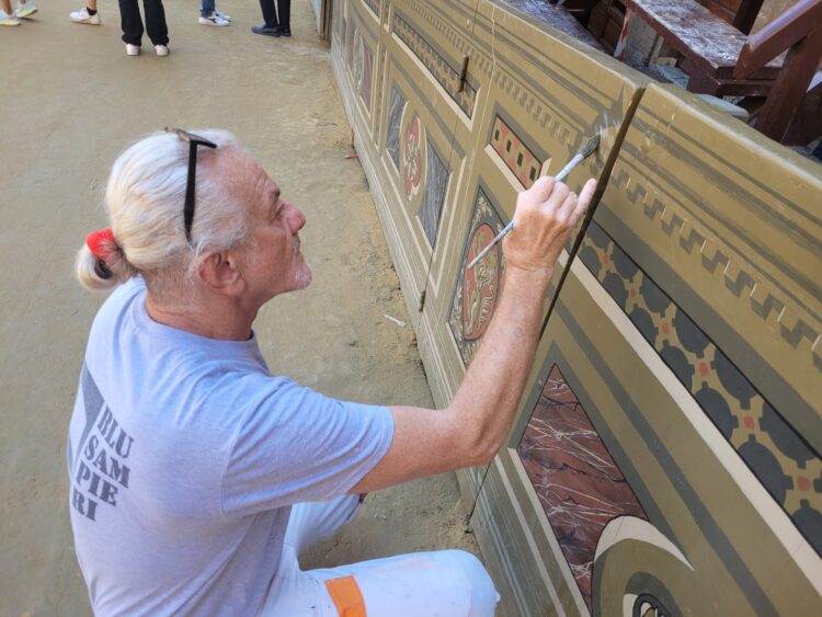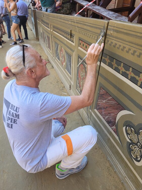 “L’iniziativa è nata nel 2019 – spiega il direttore della scuola Stefano Cerretani – che, nell’ambito di un corso per Pittore Decoratore, aveva visto quattordici allievi della Scuola, affiancati dagli esperti professionisti Maurizio Sampieri e Anna Rita Cotugno, impegnati nel rifacimento pittorico in linea con il disegno originale presente sui pannelli del palco. A causa della sospensione del Palio, durante la pandemia, le strutture lignee rinnovate, non avevano ancora visto la luce e sono state esposti al pubblico solo nel Palio di Luglio 2022”.