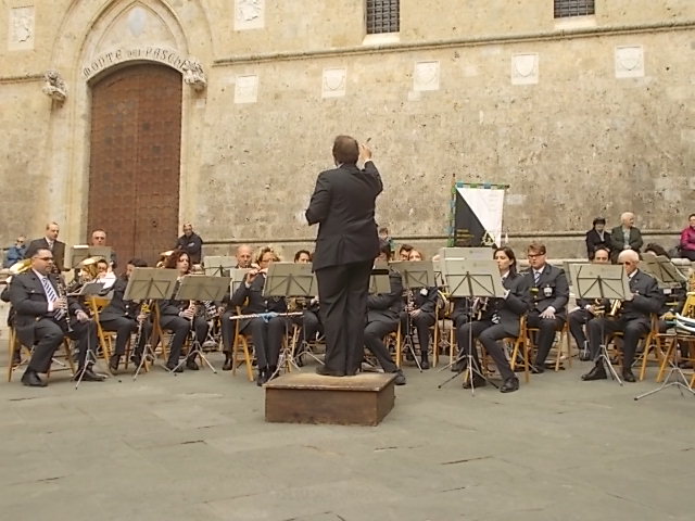Una Banda di una bravura magistrale, con una nota ironica di sottofondo: suonare “l’estasi dell’oro” davanti alla sede (chiusa) del Monte dei Paschi.