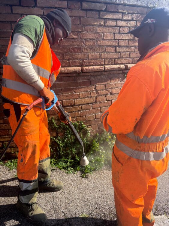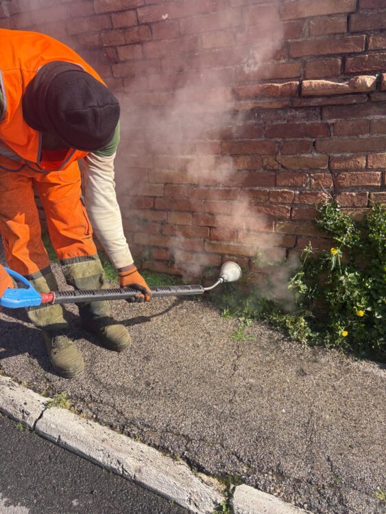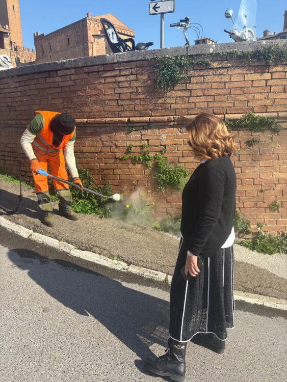 SIENA. Interventi di eliminazione di erba infestante questa mattina, martedì 24 marzo, da parte degli operai del servizio Manutenzione del Comune di Siena. Attraverso l’utilizzo di una macchina diserbante a vapore, in particolare, l’amministrazione comunale ha lavorato in piazza del Mercato e piazza Santo Spirito per pulire alcuni spazi dove la vegetazione era particolarmente presente, portando criticità sia dal punto di vista ambientale che di decoro e igiene. Presente anche l’assessore all’ambiente e al decoro urbano, Barbara Magi.