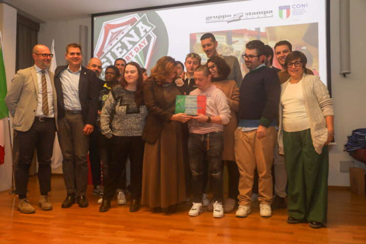 A chiudere il Siena Sport Day, il momento emotivamente più partecipato e al tempo stesso divertente. Le ragazze e i ragazzi di Anffass Alta Valdelsa hanno infatti ricevuto il Premio Montermini, assegnato dalla famiglia dell’indimenticato Roberto Montermini (assieme a C.O.N.I. e Gruppo Stampa) all’associazione che quotidianamente permette loro momenti di inclusione, anche in ambito sportivo: un riconoscimento all’importanza del progetto che, in collaborazione con Poggibonsi Basket, porta questi atleti speciali a cimentarsi, e integrarsi, anche sotto canestro. Ospite al Santa Chiara Lab lo schermitore paralimpico Matteo Betti, reduce dall’accensione della fiamma olimpica (è stato l’ultimo tedoforo nel tratto senese compiuto dal simbolo di Milano-Cortina 2026): per lui si è trattato di un…ritorno a casa, considerato il Premio Sportivo dell’Anno assegnatogli già nel lontano 2006 dal Gruppo Stampa.