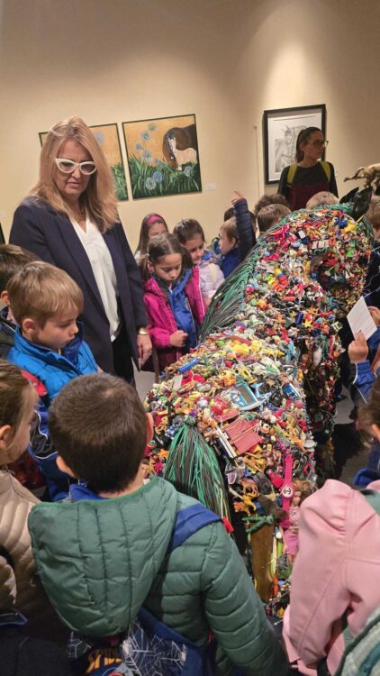 I giovani visitatori, curiosi e pieni di domande, sono rimasti affascinati dalle tecniche artistiche utilizzate e dai messaggi di sostenibilità e pace trasmessi da alcune delle opere. L’entusiasmo e la partecipazione attiva degli alunni testimoniano l’impatto che l’arte può avere sulle nuove generazioni, stimolando la loro creatività e sensibilità verso tematiche attuali.