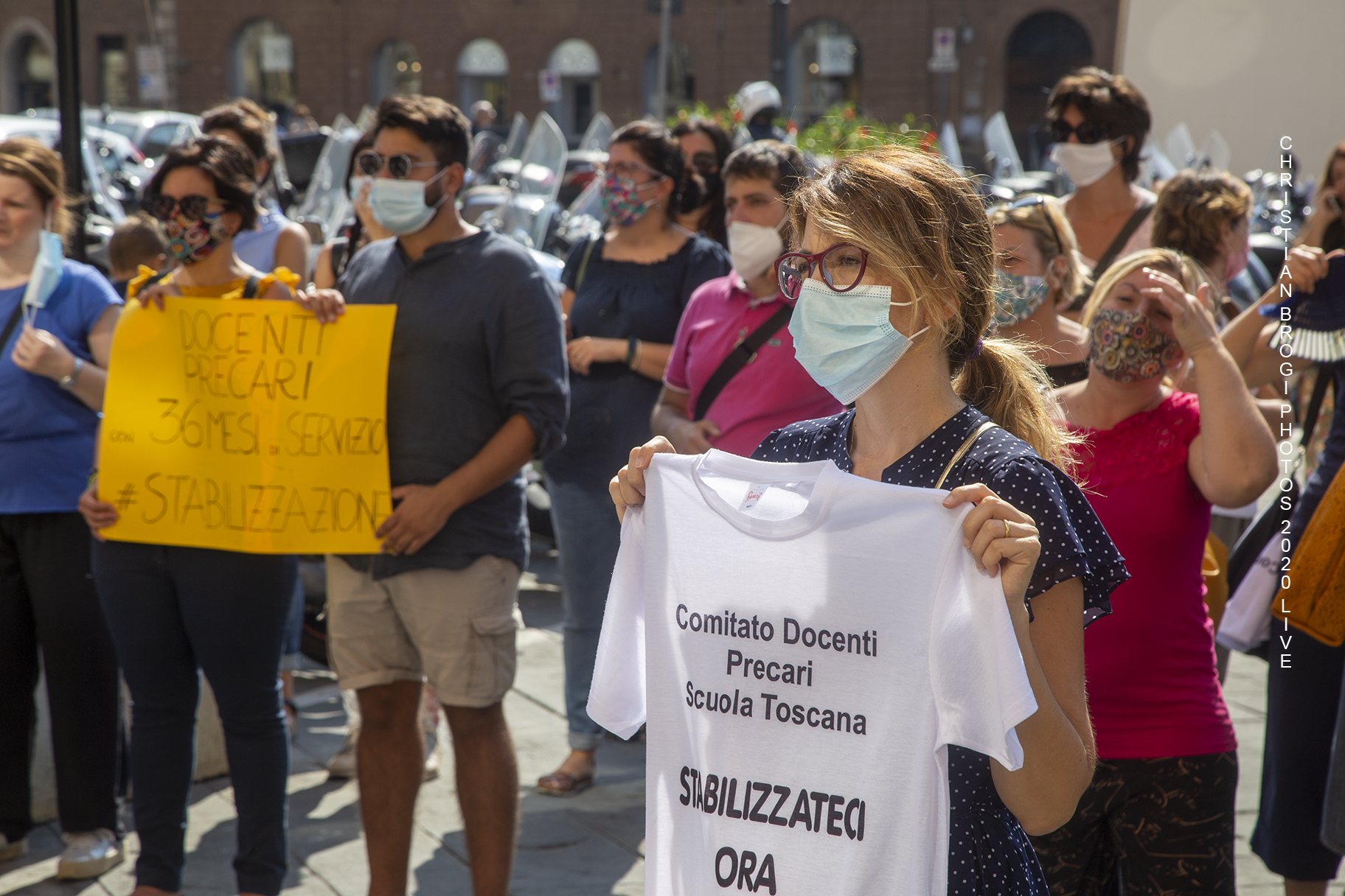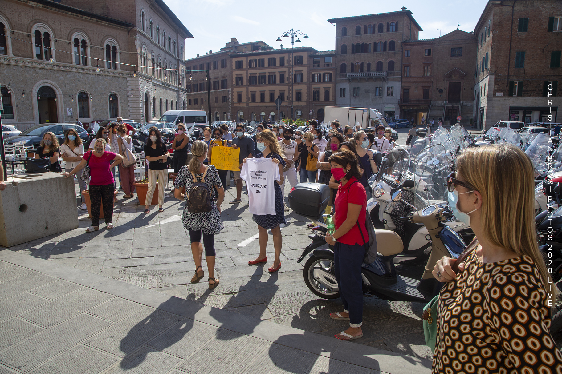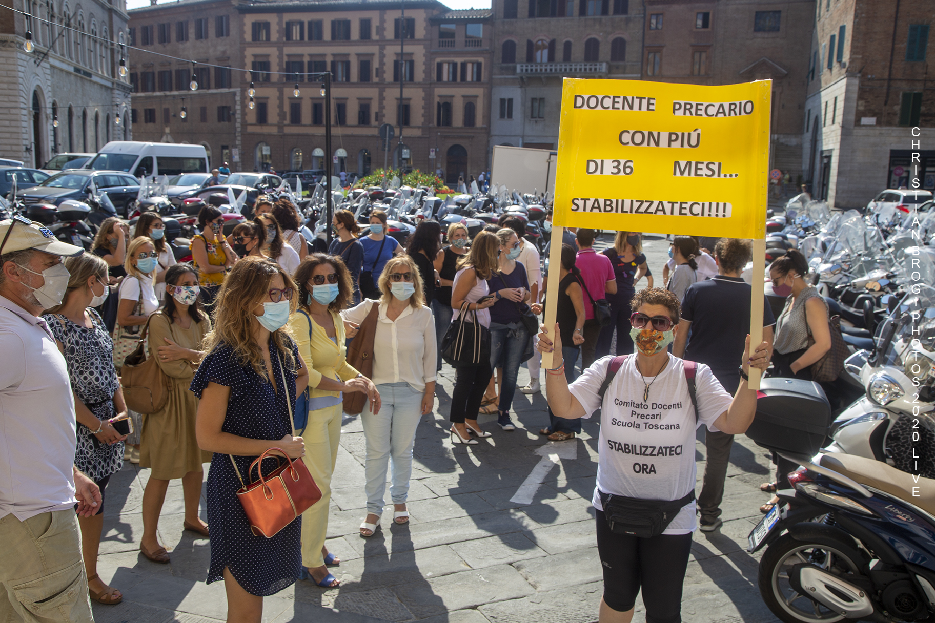 SIENA. Oggi (15 settembre) un folto numero di docenti precari ha manifestato in maniera pacifica ed ordinata di fronte alla Camera di commercio, stanco delle iniquità ed assurdità del sistema scolastico, che non tiene conto delle esigenze di studenti e lavoratori nella scuola.