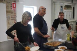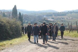 Fabio Mugnaini (antropologo dell’Università di Siena). Domenica Stagno (assessore alla Cultura di Castelnuovo), Tamar Tal Anati, discendente dei protagonisti della vicenda, che racconta la storia di Bubi (uno dei tre bambini nascosti nel bosco) li hanno accompagnati. Una lenta ridiscesa dal fitto dei lecci di studenti e insegnanti verso Villa a Sesta con la supervisione protettiva del Gruppo Escursionisti della Berardenga. Poi il pranzo nei locali del Circolo ARCI, dove i volontari hanno servito u n menu che va ben oltre le stelle, con il saluto del sindaco Fabrizio Nepi.