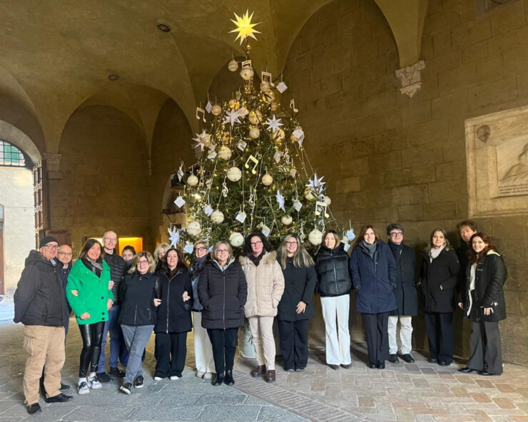 L’albero, divenuto uno dei simboli della Chigiana durante le festività, è particolarmente suggestivo e al tempo stesso attento alla sostenibilità: le decorazioni sono infatti realizzate riutilizzando i manifesti delle passate stagioni concertistiche, un modo per guardare al futuro valorizzando le proprie tradizioni.