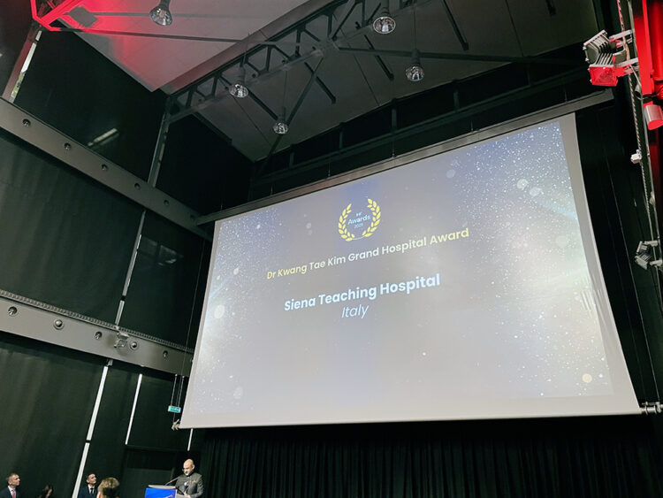 Per la categoria “Grand hospital Award”, che premia gli ospedali eccellenti in cinque dimensioni dei servizi sanitari (qualità dei servizi, esperienza del paziente, efficienza, benessere del personale, equità e accesso alle cure), l’Aou Senese è risultata finalista insieme ad altre 9 organizzazioni sanitarie provenienti da Asia orientale e Medio Oriente, ricevendo durante la cerimonia di premiazione il riconoscimento di “Menzione d’onore” (“Honourable mention – Siena Teaching Hospital”).