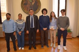 02 – I 5 studenti con il Rettore e lo staff della Divisione per le Relazioni internazionali Unisi (a sinistra nella foto)