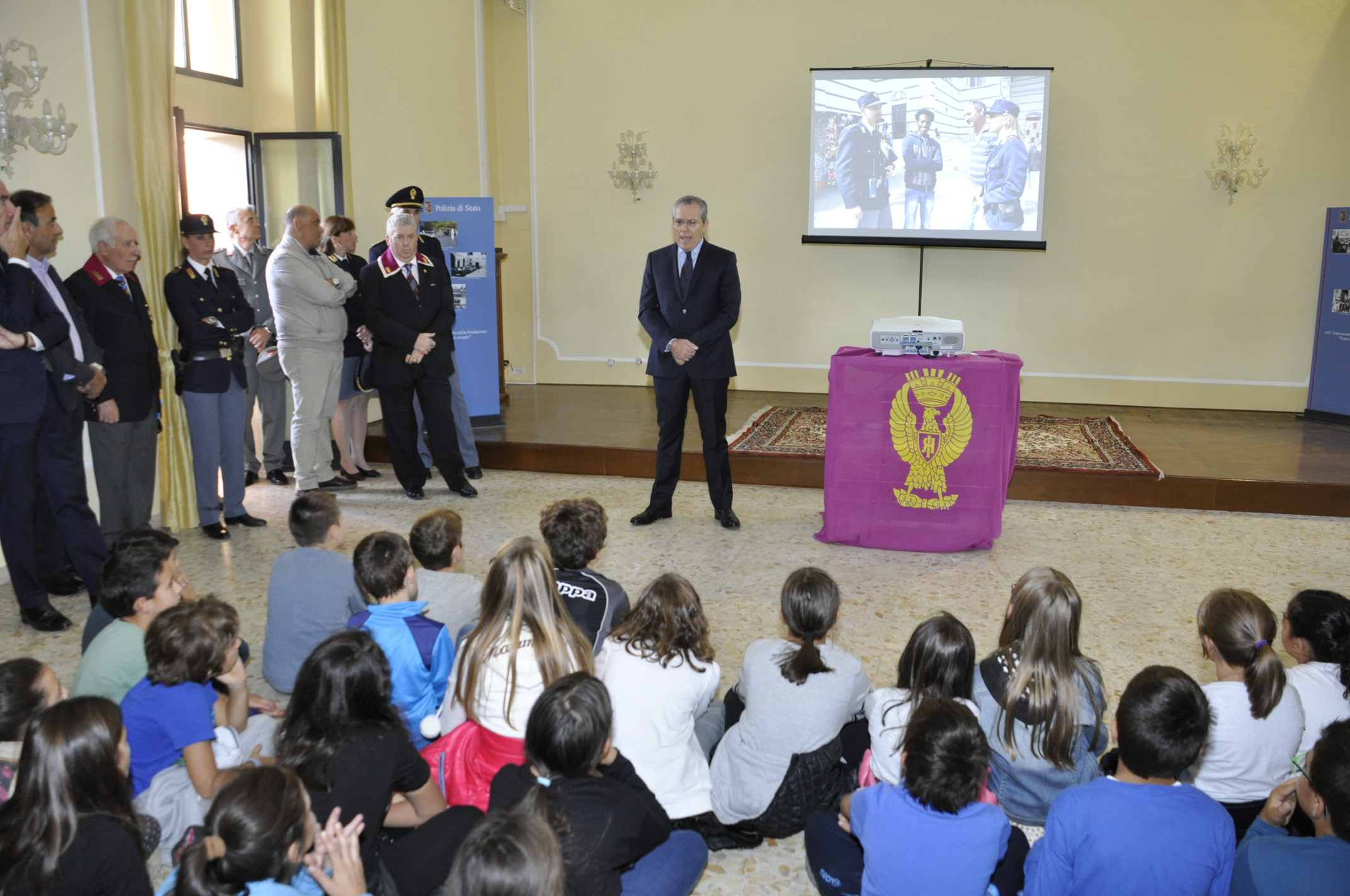 E’ seguito un saluto da parte del Questore ed un brindisi, mentre su uno schermo scorrevano delle immagini colte in varie circostanze operative o di servizio, sia negli uffici della Polizia di Stato che all’esterno.