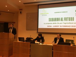 SIENA. L’agricoltura senese è proiettata al futuro, ma le sfide che aspettano gli agricoltori senesi saranno impegnative. Serviranno competitività, recupero del reddito, una riforma della Pac adeguata e lo sviluppo delle aree rurali. E poi una serie di problematiche da superare: dalla mancanza di infrastrutture adeguate all’emergenza (infinita) degli ungulati e animali selvatici, senza dimenticare una burocrazia sempre pressante. Sono solo alcuni dei temi emersi durante l’assemblea della Cia Siena, che si è svolta oggi nel capoluogo – all’auditorium Confesercenti – dal titolo “Sguardo al futuro” dove sono state presentate le proposte dell’agricoltura senese alla Politica, a pochi giorni dal voto del 4 marzo.