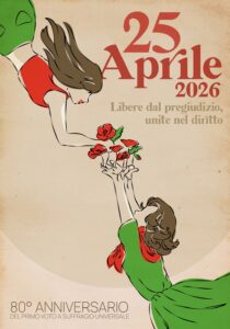 SIENA. Due donne che si tendono la mano attraverso il tempo, unite da fiori rossi come gocce di libertà. È questo il manifesto ufficiale del 25 Aprile 2026, nato dalla matita di una giovane studentessa e scelto dai cittadini che hanno espresso oltre 450 voti ai 35 disegni in concorso per celebrare gli 80 anni dal primo voto alle donne in occasione delle celebrazioni ufficiali del 25 aprile coordinate dalla Provincia di Siena insieme al Comitato tra le forze democratiche.