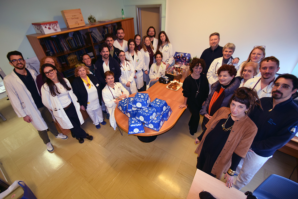 SIENA.Un gesto che si ripete ogni anno, come le migliori tradizioni di Natale. La Lega Italiana Fibrosi Cistica (LIFC) della Toscana ha donato al personale del Centro trapianto di polmone dell’Azienda ospedaliero-universitaria Senese dei panettoni e dei calendari. A consegnare i doni, Angela Di Ciommo, presidente LIFC Toscana, e Ilaria Mazzi, segretaria LIFC Toscana. Il Centro trapianto di polmone dell’Aou Senese, unico in Toscana, diretto dal professor Luca Luzzi e coordinato dalla professoressa Elena Bargagli, è riferimento finale trapiantologico della Rete Toscana Fibrosi Cistica, collaborando con il centro regionale Fibrosi Cistica del Meyer e con gli specialisti dell’Azienda Ospedaliera Universitaria Careggi. La collaborazione tra Aou Senese e LIFC va avanti da tempo e con risultati importanti come testimonia, tra le altre cose, anche il premio di ricerca dedicato al tema delle malattie rare e del trapianto di polmone e assegnato per la prima volta nello scorso mese di ottobre.