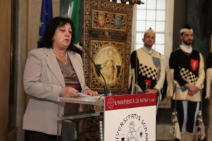 Dopo il rettore sono intervenuti il vice-president della cinese Nantong University, Mingming JI, che ha sottolineato l’importanza del recente progetto di cooperazione didattica del Siena Future Biotech Institute, la rappresentante del Consiglio studentesco, Elisa Marretti, e la rappresentante del personale tecnico-amministrativo, Daniela Orsi.