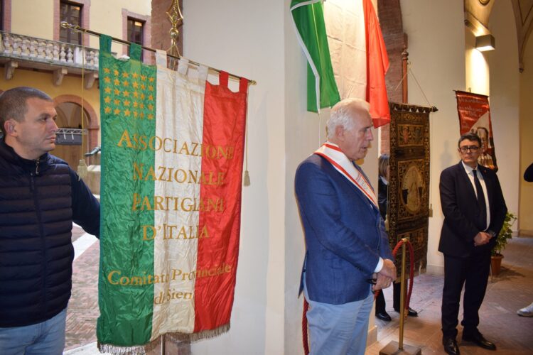 La cerimonia nel cortile del palazzo del Rettorato. L’iniziativa è stata coordinata con il Comitato provinciale Anpi di Siena e con il Circolo Anpi “Carlo Rosselli” degli Atenei senesi
