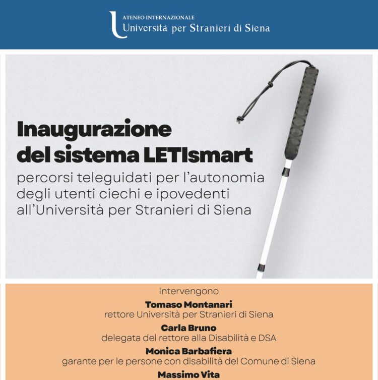 “L’Università per Stranieri di Siena è il primo ateneo toscano ad aderire al progetto LETIsmart”, mette in evidenza Carla Bruno, delegata del rettore alla disabilità e ai disturbi dell’apprendimento, ”un ulteriore passo avanti nel suo impegno per un ambiente accogliente e inclusivo che promuova una partecipazione più completa alla vita universitaria. L’intervento si integra infatti con altre azioni dell’ateneo per migliorare l’accessibilità a persone con disabilità visiva, come l’integrazione di comandi tattili e vocali nella principale colonna di ascensori e l’allestimento in biblioteca di una postazione di lavoro dedicata”.