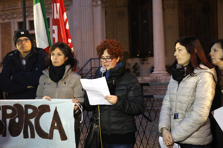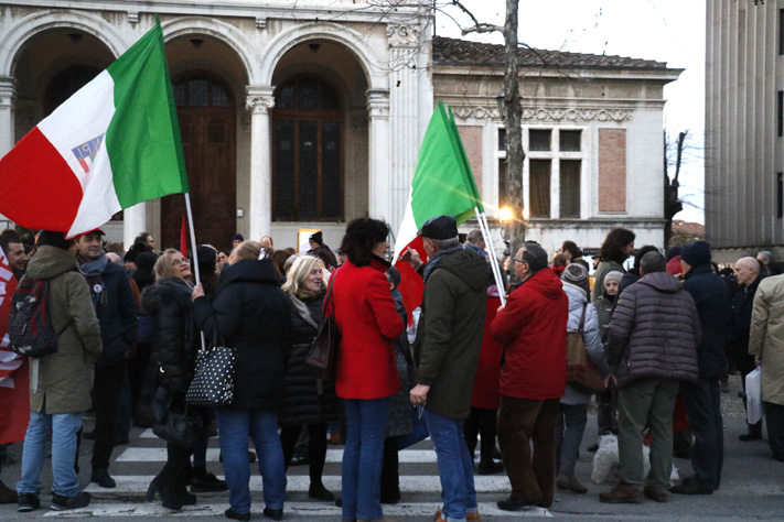 SIENA. Molto partecipata la manifestazione davanti all’Asilo Monumento (sede della scuola materna dello “scandalo” dei bambini che giocavano con la schiuma da barba), svoltasi questo pomeriggio (7 febbraio).