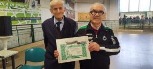 Nell’occasione, il presidente Antonio Saccone, ha omaggiato il Maestro con una pergamena in onore dei tanti anni di carriera all’interno della Polisportiva