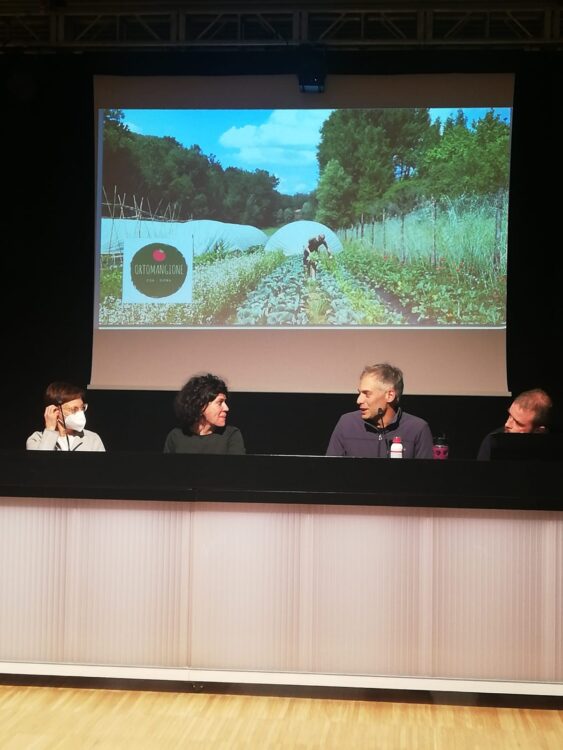 Creata nel 2007, la cooperativa Mondomangione negli anni si è evoluta da bottega del commercio equo ad uno spazio multifunzionale: nei suoi locali si vendono prodotti del territorio, si distribuiscono gli ordini del GAS (Gruppo di acquisto solidale) e dei due progetti di auto-produzione: le verdure coltivate nell’orto collettivo della cooperativa che si trova a Montalbuccio (un ettaro e mezzo di terreno), dove si sta recuperando anche un frutteto, un’oliveta di 400 piante e dove si è comunicato a produrre miele, e il pane dell’orto, prodotto con l’impasto di una popolazione evolutiva di grani antichi biologici coltivati dall’azienda agricola Passerini di Torrita e cotto a legna a Montalbuccio. Sia l’orto collettivo che il pane sono due progetti strutturati sul modello delle CSA (Comunità che Supportano l’agricoltura) nel quale i soci pre-finanziano il raccolto e le attività del forno assicurandosi settimanalmente pane e verdura freschi, di alta qualità, zero-pesticidi, e davvero a km0.