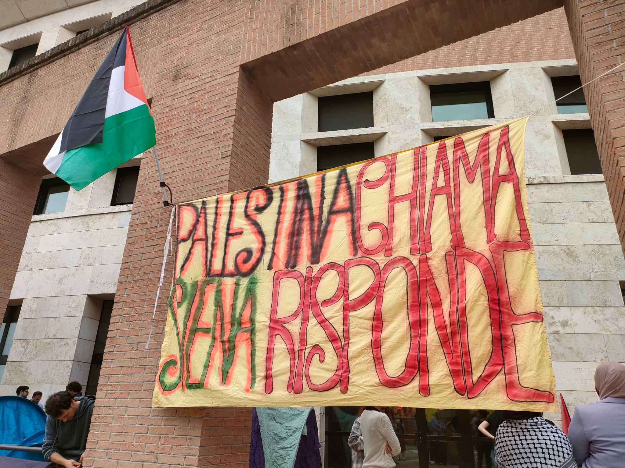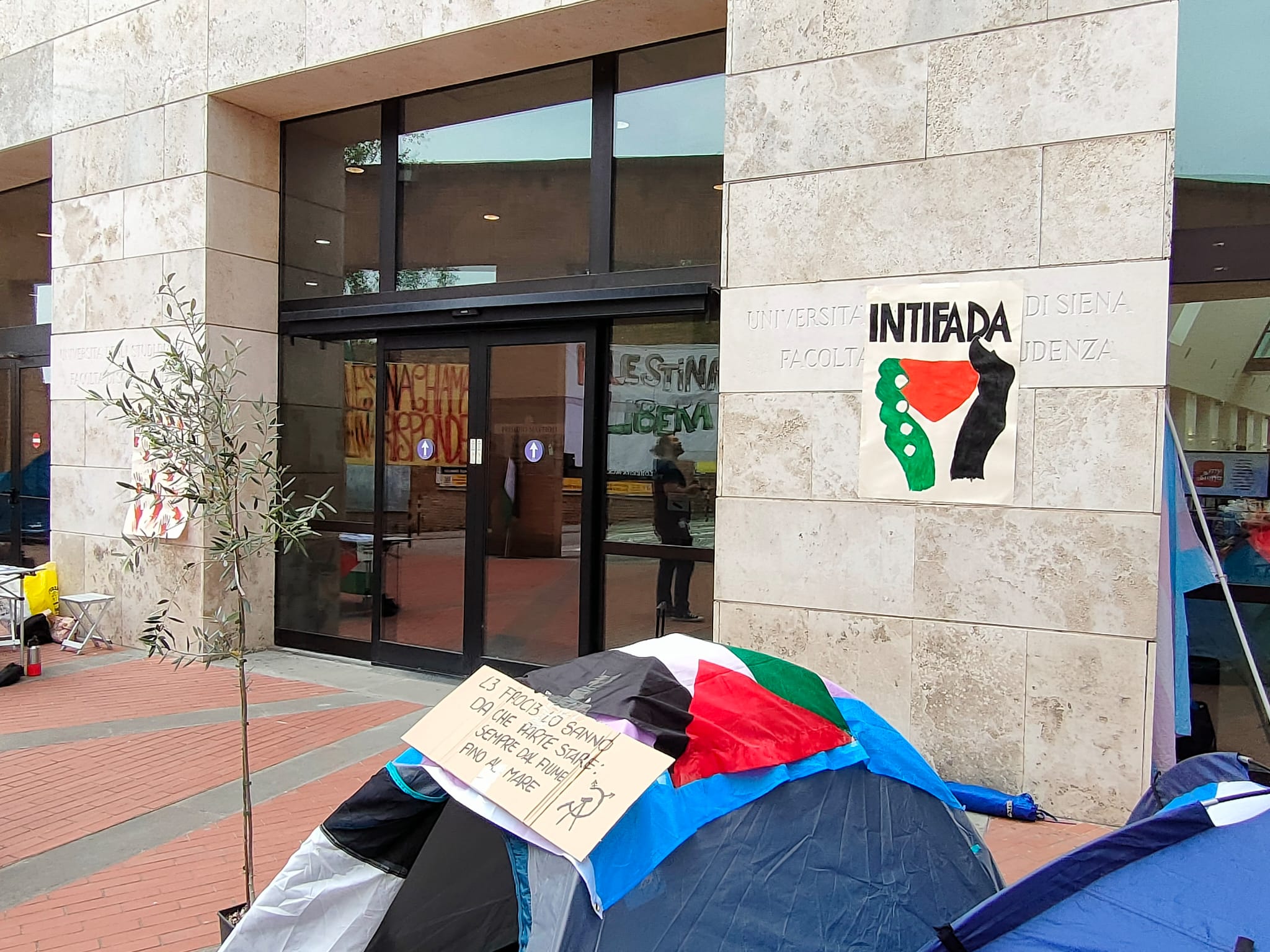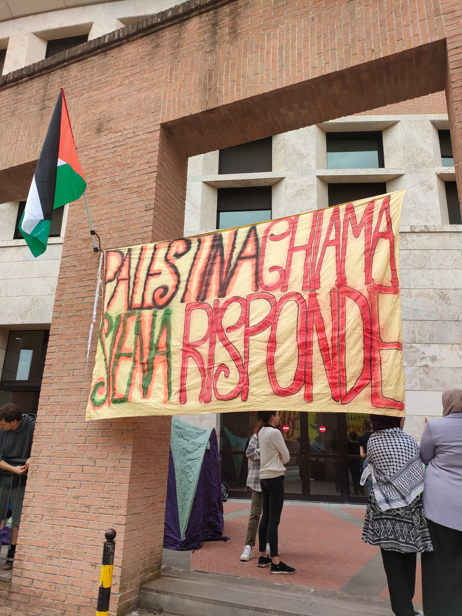 SIENA. “Oggi, lunedì 13 Maggio, anche noi del Comitato Palestina Siena abbiamo deciso di unirci alla mobilitazione delle Acampade nelle università. Questa mobilitazione, che si sta espandendo a macchia d’olio, ha ormai raggiunto una dimensione internazionale. Dagli Stati Uniti alla Francia, dalla Gran Bretagna alla Spagna fino ad arrivare a numerose università italiane, gli studenti hanno deciso di opporsi alla complicità che le istituzioni democratiche, fra cui quelle universitarie, hanno con l’attuale genocidio in corso e con decenni di occupazione coloniale e apartheid perpetrata dall’entità sionista ai danni del popolo palestinese.