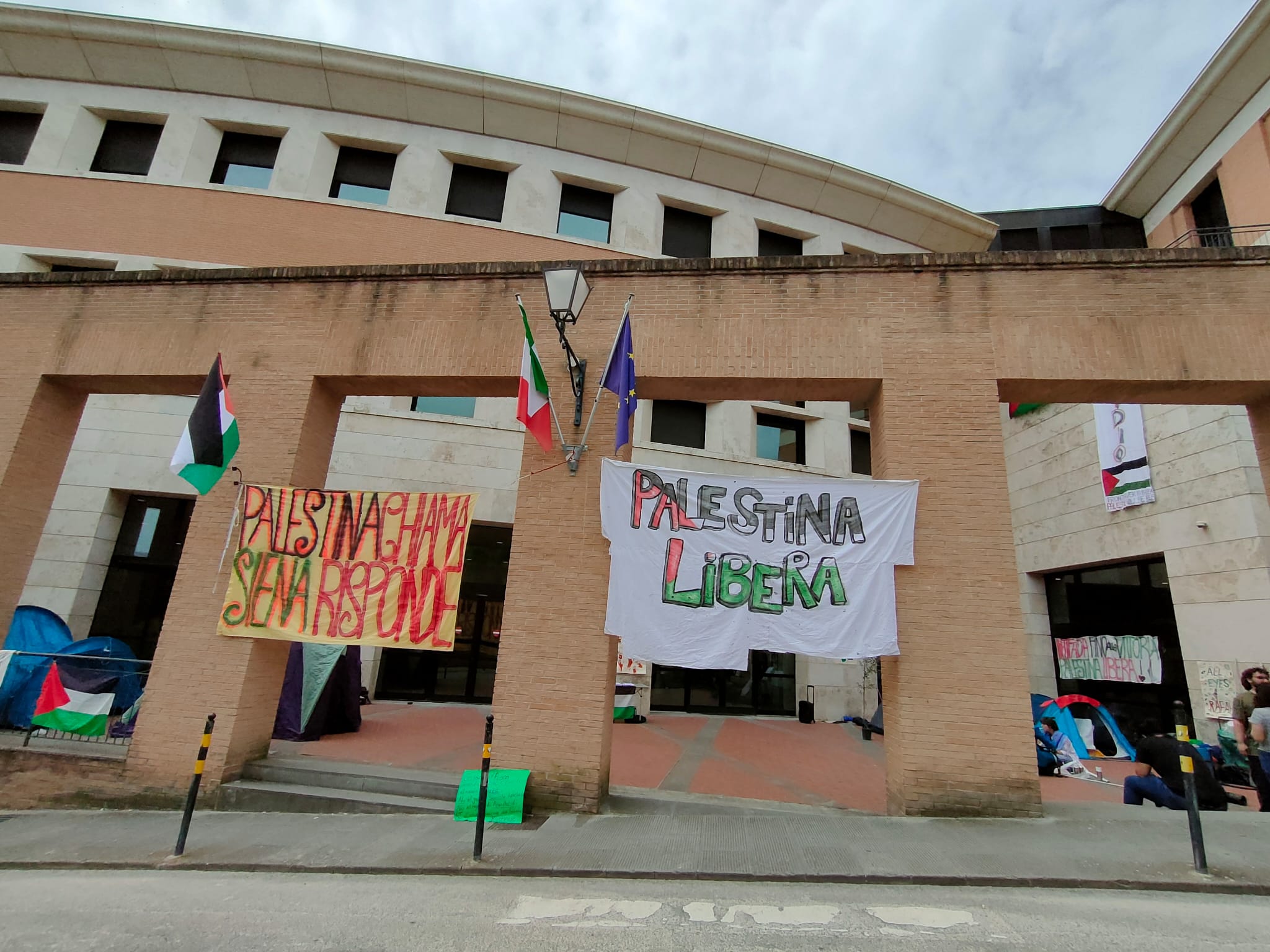 Per questo motivo chiediamo un incontro pubblico col rettore Di Pietra e il rettore Montanari in data 15 Maggio alle 18.30, anniversario della Nakba, qui all’Acampada al Polo Mattioli dell’Università di Siena”.